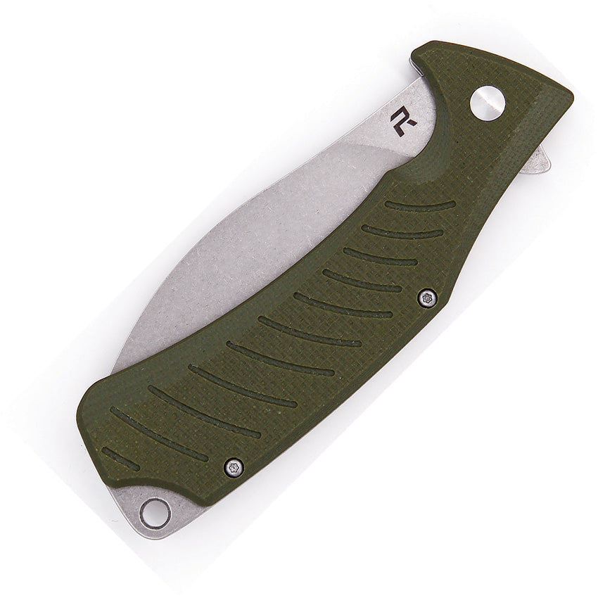 4.63" (11.76cm) closed. 3.5" (8.89cm) stonewash finish D2 tool steel Nessmuk style blade. OD green G10 handle. Extended tang. Lanyard hole. Pocket clip. Boxed.