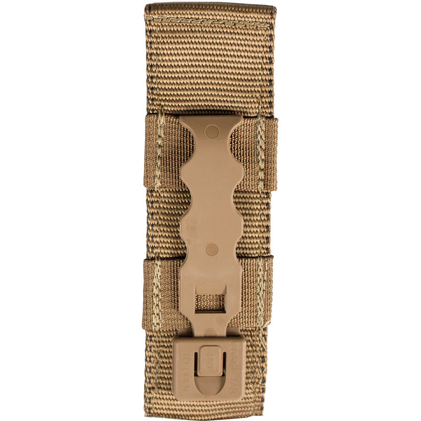 Extra wide 4" elastic webbing. Low profile design. Secure compartment for carrying radios, mags, phones, or other small equipment. Attaches to MOLLE or belt with included 6" MALICE Clip. Color: Coyote Brown. Hang packaged.