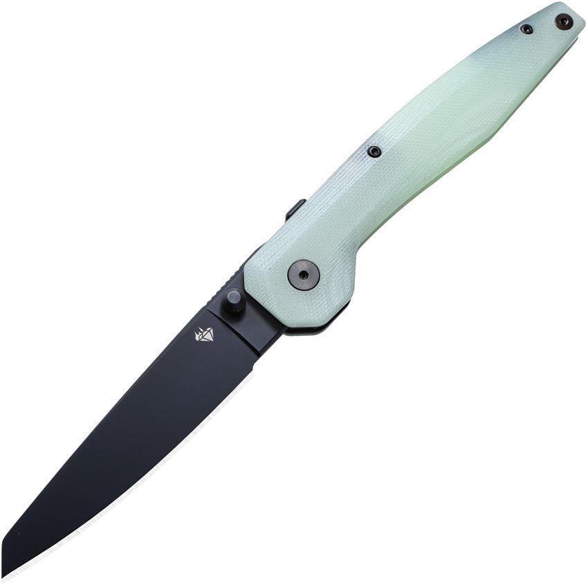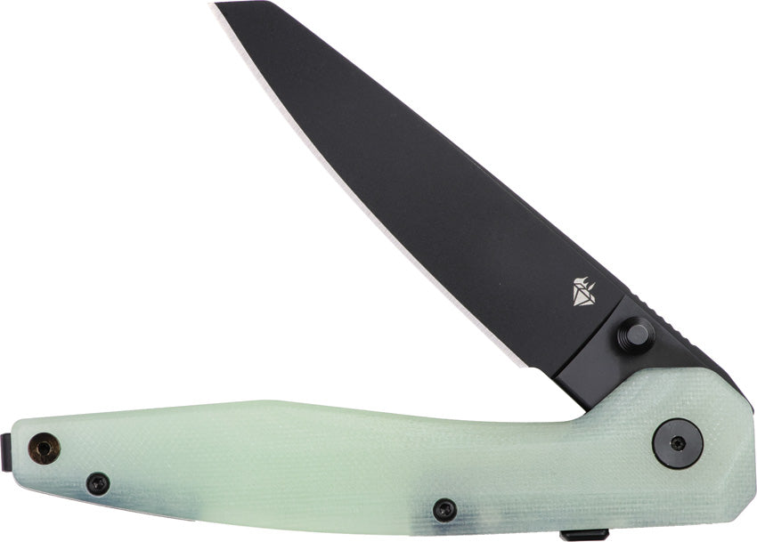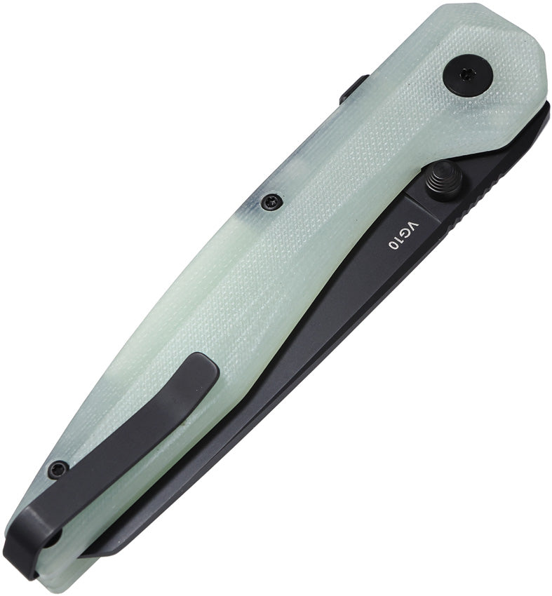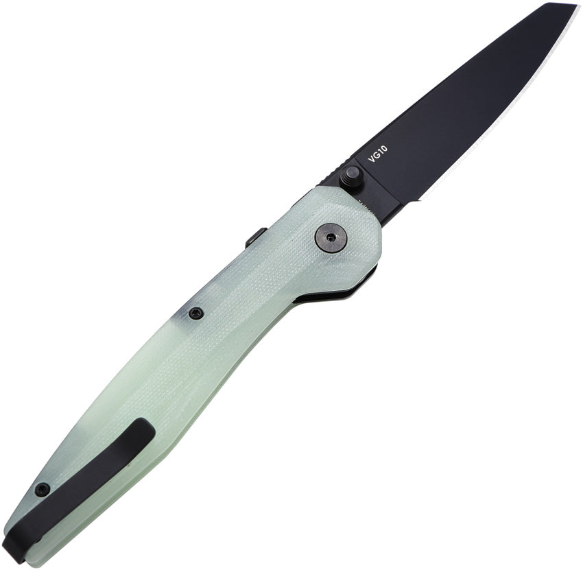 4.5" (11.43cm) closed. 3.5" (8.89cm) black PVD coated VG-10 stainless sheepsfoot blade. Jade G10 handle. Thumb stud. Pocket clip. Boxed.