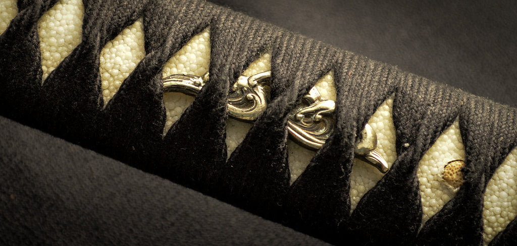41.25" overall. 28.13" carbon steel blade. Rayskin handle. Koi motif steel tsuba. Black wood scabbard. Boxed.