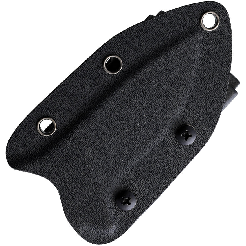 7.25" (18.42cm) overall. 3.5" (8.89cm) black stonewash finish 440C stainless blade. Black canvas micarta handle. Finger ring. Full tang. Black nylon storage pouch. Black Kydex belt sheath.