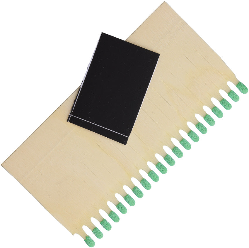 Dimensions: 3.38" x 2.13". 20 matches. Same size and thickness as a standard credit card so it fits into a standard wallet slot. Fits into a standard sized mint tin or other containers. Never expires. Bulk packed.