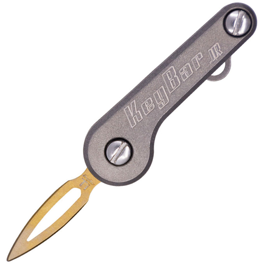 2.75" overall. Bronze anodized titanium construction with Fleur de lis thumb tab. Fits KeyBar and KeyBar Jr. Hang packaged.
