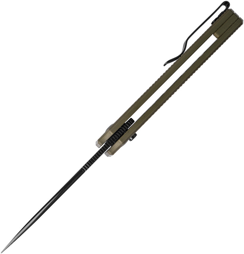 4.25" (10.8cm) closed. 3.13" (7.95cm) black finish Nitro V steel blade. OD green G10 handle. Extended tang. Thumb pull. Pocket clip. Boxed.