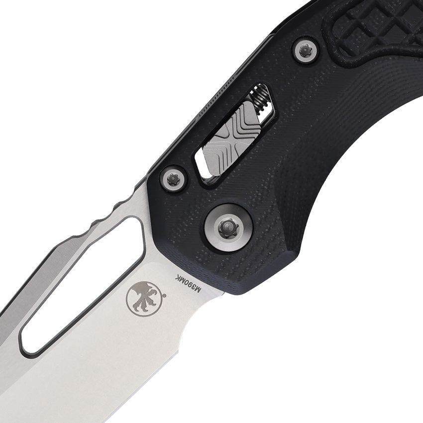5" (12.7cm) closed. 3.75" (9.53cm) stonewash finish Bohler M390MK stainless blade. Black frag pattern G10 handle. Thumb pull. Lanyard hole. Pocket clip. Boxed.
