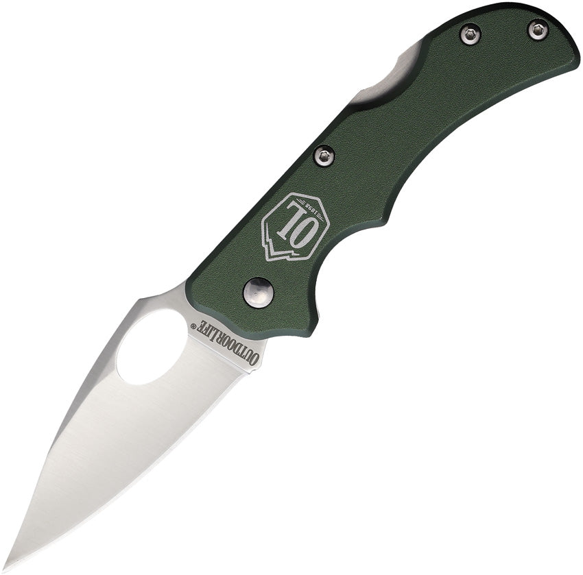 3.5" (8.89cm) closed. 2.75" (6.99cm) satin finish stainless blade. Green anodized aluminum handle. Thumb pull. Pocket clip. Boxed.