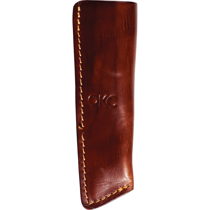 8" (20.32cm) overall. 3.25" (8.26cm) black oxide coated 1075HC steel blade. Tan canvas micarta handle. Full tang. Brown leather belt sheath. Boxed.