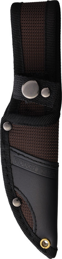 7.75" (19.69cm) overall. 3.75" (9.53cm) satin finish 440 stainless blade. Brown burlap micarta handle. Full, extended tang. Lanyard hole. Black nylon belt sheath. Boxed.