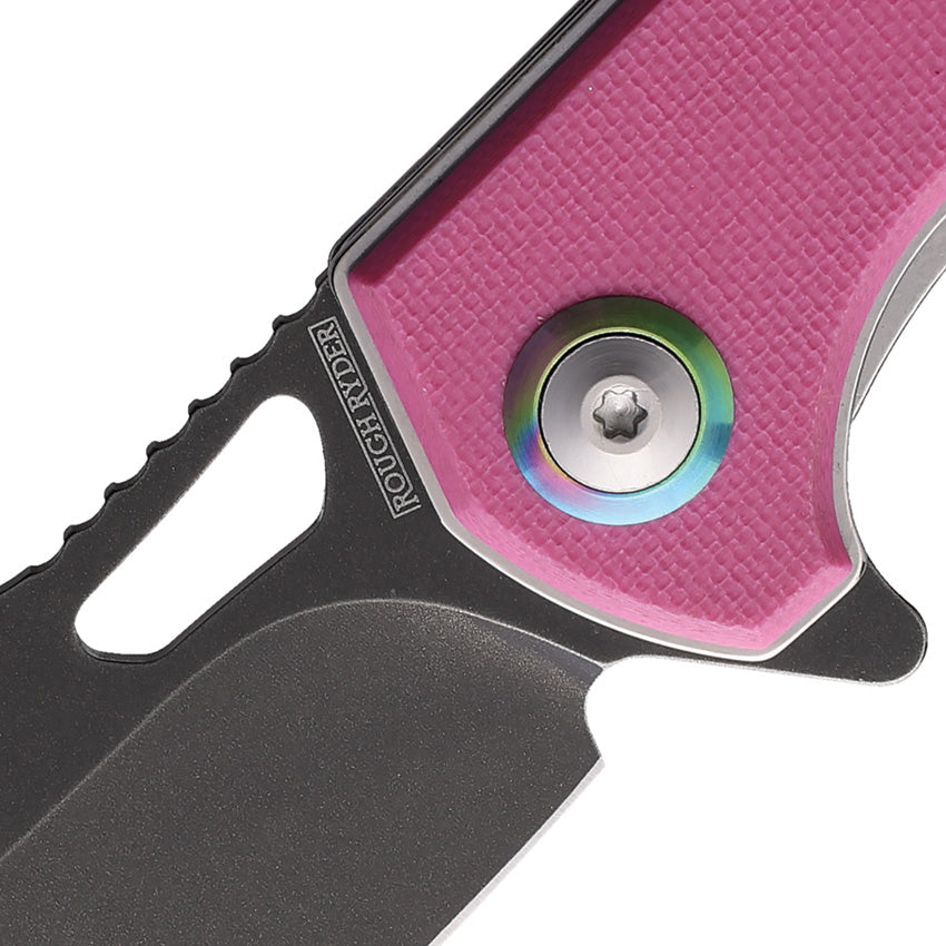 4.25" (10.8cm) closed. 3" (7.62cm) black stonewash finish stainless blade. Pink G10 handle. Extended tang. Lanyard hole. Pocket clip. Boxed.