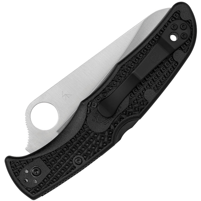 5" (12.7cm) 閉じた状態。3.88" (9.86cm) サテン仕上げ H1 スチールブレード。ブラックの双方向テクスチャ FRN ハンドル。親指で引っ張る。ストラップホール。ポケットクリップ。箱入り。