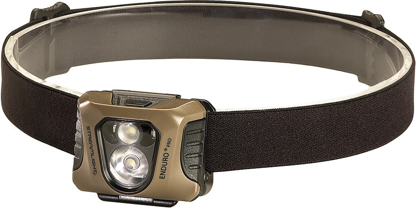 Water resistant. Impact resistant. 200 lumens. 95m beam distance. Multi function. Low profile. Spot/flood. White and green LEDs. 45 degree tilting head. 8 output modes. Easy open battery door. Black and tan nylon head strap. Requires (3) AAA batteries (included). Clam packed.