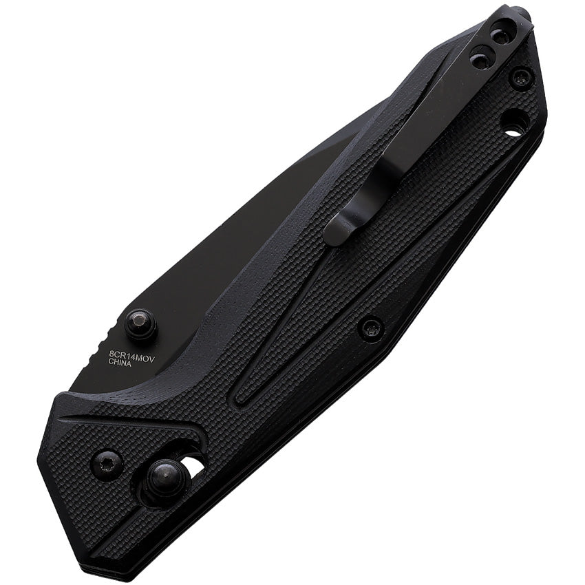 4.5" (11.43cm) closed. 3.25" (8.26cm) black finish stainless blade. Black G10 handle. Thumb stud. Lanyard hole. Pocket clip. Boxed.