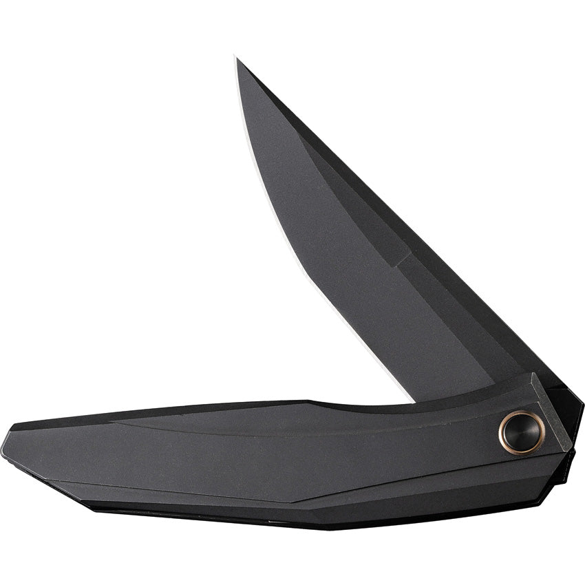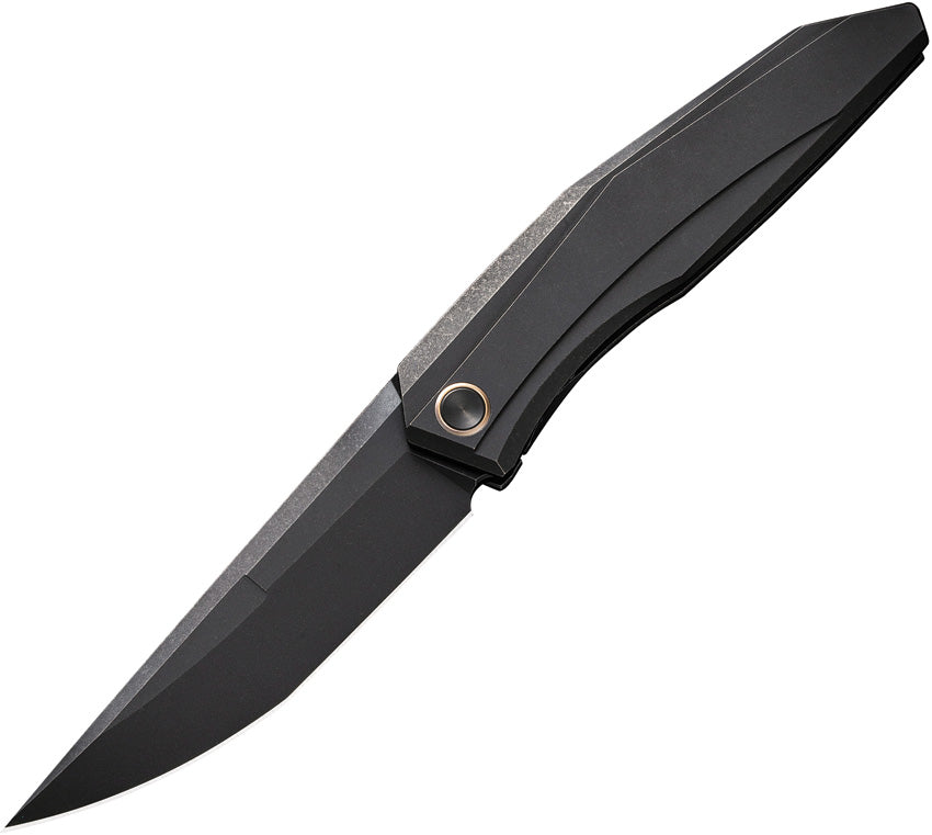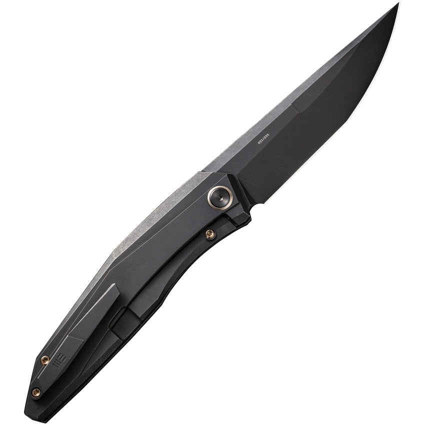 5" (12.7cm) closed. 4" (10.16cm) black stonewash finish CPM-20CV stainless blade. Black stonewash finish titanium handle. Extended tang. Pocket clip. Serialized limited edition. Black nylon zippered storage case. Boxed.