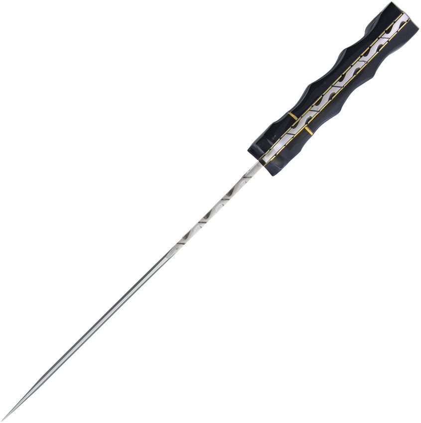 16" overall. 10.5" satin finish stainless blade. Black finger grooved synthetic handle. Full tang. Boxed.