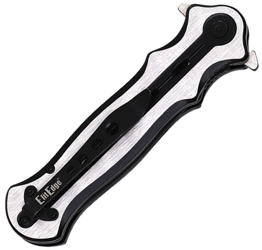 Assisted opening. 4.75" (12.07cm) closed. 3.75" (9.53cm) two-tone finish false edge 8Cr13MoV stainless dagger blade. Black and silver stainless handle. Extended tang. Pocket clip. Boxed.