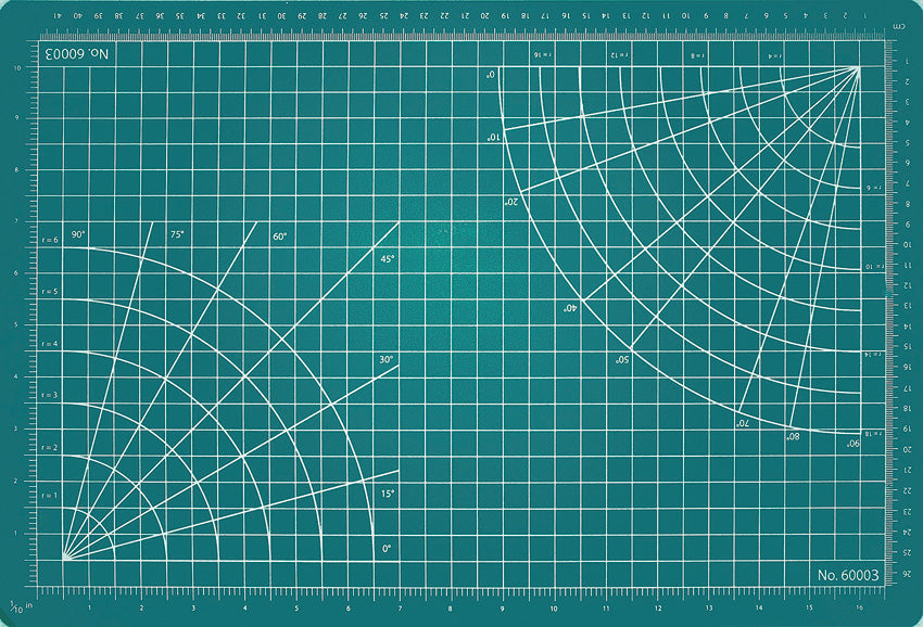 Dimensions: 12" x 18". Color: Green. Five-ply construction. Double sided, one each metric and imperial measurements. Phthalate free surface material that absorbs cuts and retains original surface. Bulk packed.