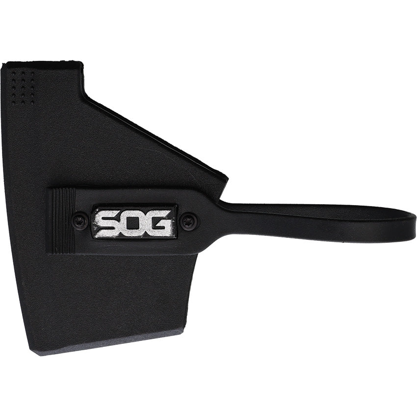 11.5" overall. 4.75" black stonewash finish stainless axe head with 3.13" cutting edge. Tan GRN handle. Lanyard hole. Black GRN belt sheath. Boxed.