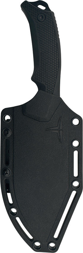9" (22.86cm) overall. 4.5" (11.43cm) black oxide coated 3Cr13 stainless blade. Black textured FRN handle. Full, extended tang. Lanyard hole. Black FRN belt sheath. Boxed.