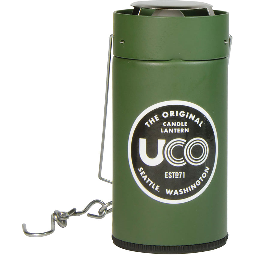 4.25" to 6.5" height. Green powder-coated finish aluminum body. Comes with four tealight candles (each with 9 hour burn time). Carry handle, hanging hook, heat shield. Twist-lock, vented base to make changing candles easily. Includes carry case.