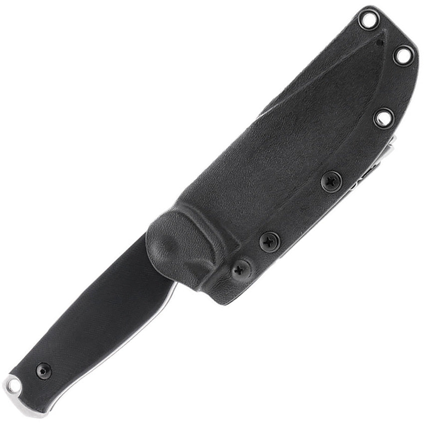 9.25" (23.5cm) overall. 4.5" (11.43cm) stonewash finish Bohler N690 stainless blade. Black G10 handle. Full, extended tang. Lanyard hole. Black Kydex belt sheath. Boxed.