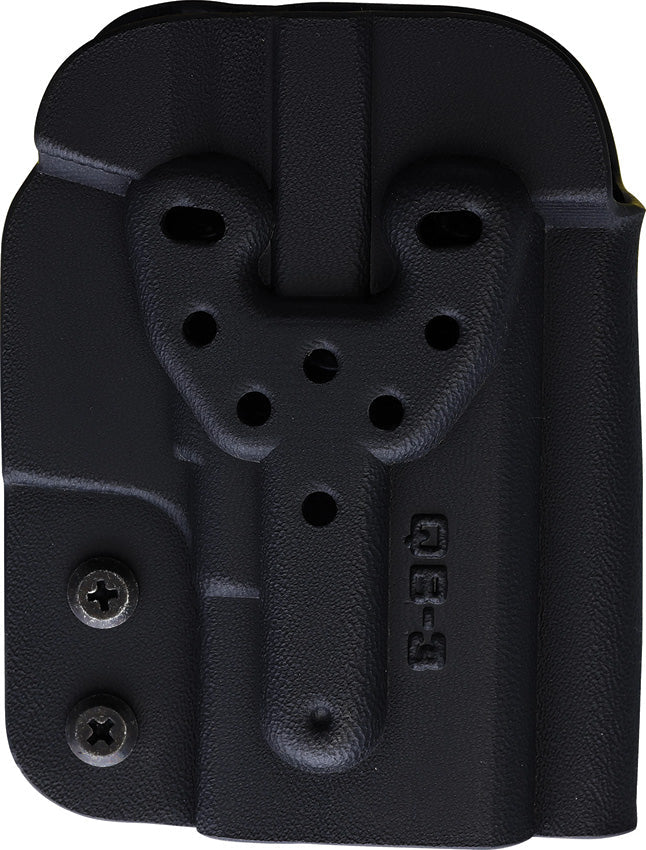 Size 3: Glock 43; Springfield XD-S; S&W Shield 9/.45 (no light/laser); Walther PPS, PPS M2, CCP. Can be worn as a concealed carry or competition holster. Great for keeping the gun safe while on the body or in storage. Can be worn left or right handed. High quality push-button mount that is easy on/off and be locked for security by sliding the button horizontally. Mount also allows for belt width adjustment. Kydex construction. Color: Black. Hang packaged.