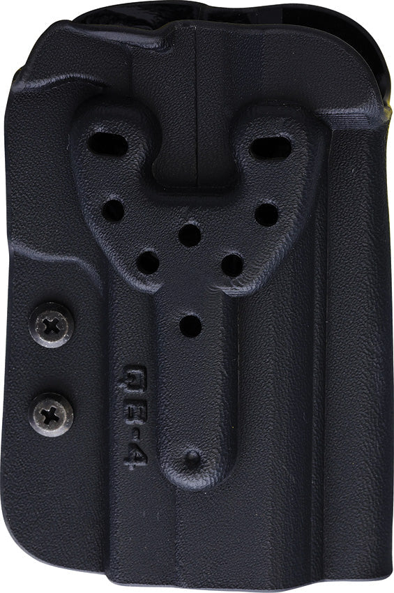 Size 4: 1911s; Colt; Remington; Kimber; Springfield (all models including TRP half and full rail); All Mil-Spec 1911s. Can be worn as a concealed carry or competition holster. Great for keeping the gun safe while on the body or in storage. Can be worn left or right handed. High quality push-button mount that is easy on/off and be locked for security by sliding the button horizontally. Mount also allows for belt width adjustment. Hang packaged.