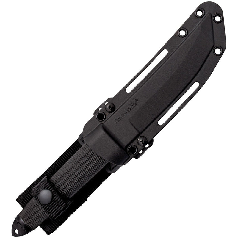 Overall: 11.5"; Blade: 6" l CPM 3V Stainless l Standard Edge l Coated Finish; Handle: Black l Kray-Ex; Other Info: Lanyard Hole. Black DLC coated tanto blade. Stainless pommel and lanyard hole. Black molded Secure-Ex belt sheath. Boxed.