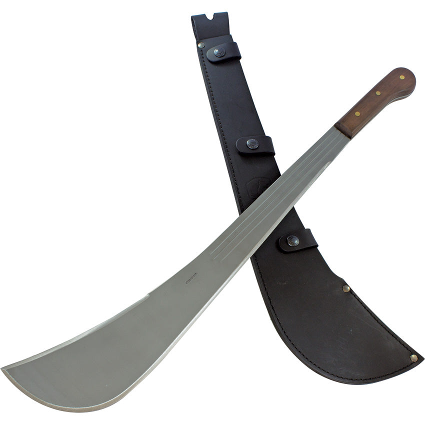 Overall: 26"; Blade: 20" l Carbon Steel l Standard Edge; Handle: Brown l Walnut; Other Info: Blasted satin finish 1075 carbon steel blade. Full tang. Black leather belt sheath. Boxed.