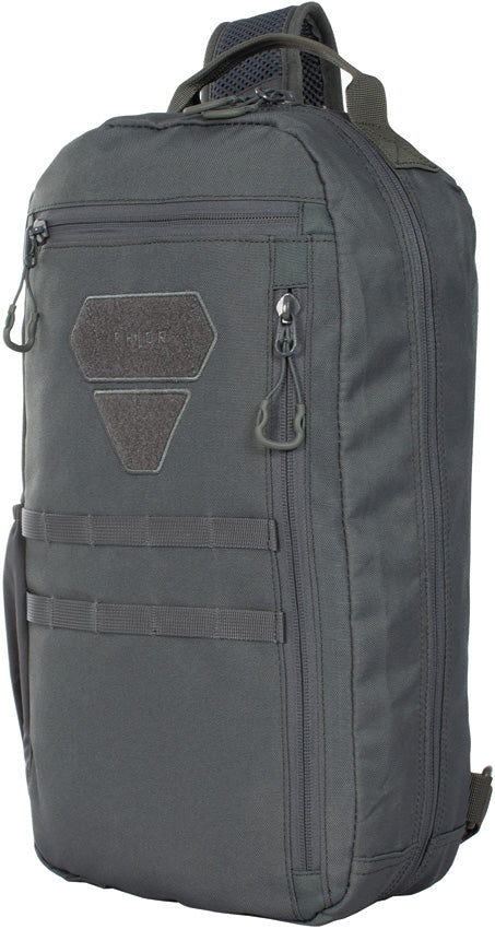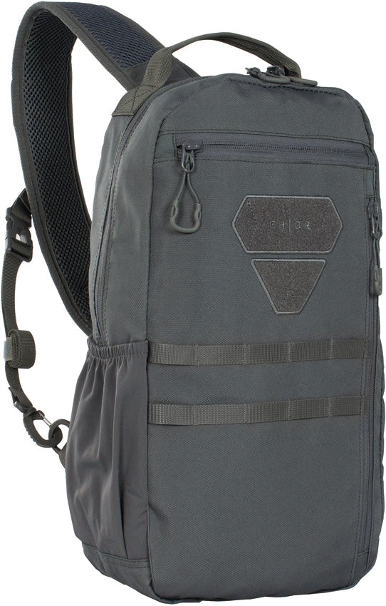 Dimensions: 17" x 9" x 4.75". 12 liter capacity. Large main compartment. Front zipped stash pocket. Front zipped large pocket. Inner dual zip access mesh pocket. Detachable zipped mesh pocket. Padded mesh back system. Adjustable padded shoulder strap. Adjustable fully removable side stabilizing strap. Hook and loop ID patch. Hydration pocket with pass through port. Color: Tornado gray. Bulk packed.