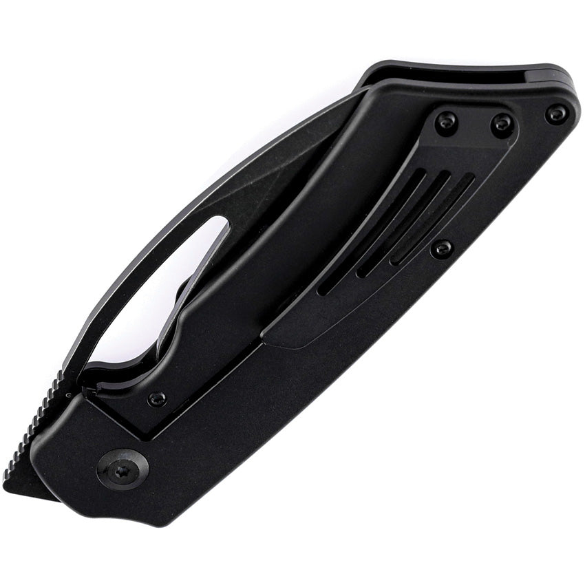 5" (12.7cm) closed. 3.5" (8.89cm) black TiNi coated CPM S35VN stainless blade. Black titanium handle. Thumb pull. Pocket clip. Stonewash finish blade. Black nylon pouch. Boxed.