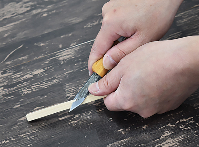 6.00" (15.24cm) overall. 2.25" (5.72cm) stainless blade. Wood handle. Ken style blade. Black leather sheath. Hang packaged.
