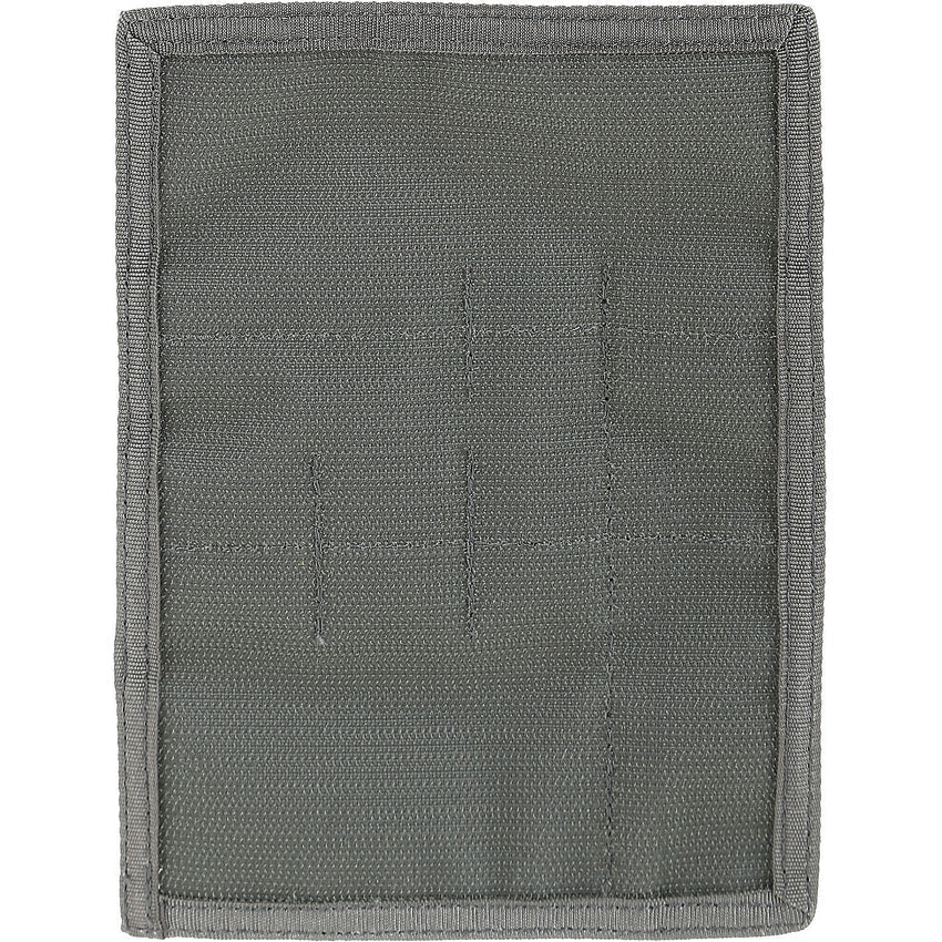 ENTITY Series. Dimensions: 5" x 7". Flat hook & loop organizer panel. Elastic webbing with divisions of various sizes. Gusseted pouch with lid. Hook backing for secure attachment to any loop surface. Lightweight and low profile. Color: Gray.