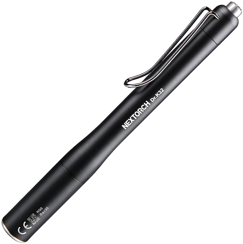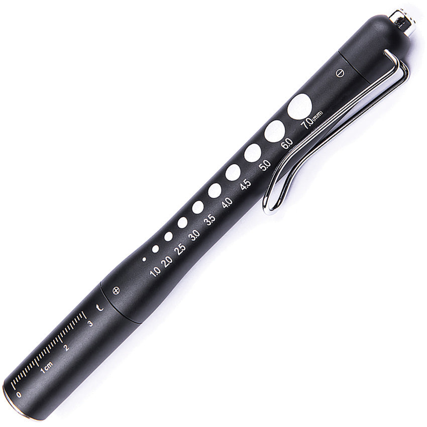Clip. Water resistant. Impact resistant. Rechargeable. Features gentle 3000K yellow light certified safe for direct eye examinations and a crisp 5700K white light for detailed ENT visualization. Requires (1) Lithium battery (included), or (2) AAA batteries (not included). Aluminum construction. Color: Black. Boxed with hanging tab.
