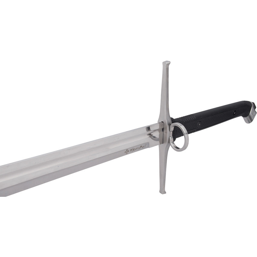42.13" (107.01cm) overall. 31" (78.74cm) satin finish 1060HC steel blade. Black textured TPR handle. Steel guard and pommel. Black synthetic scabbard. Boxed.