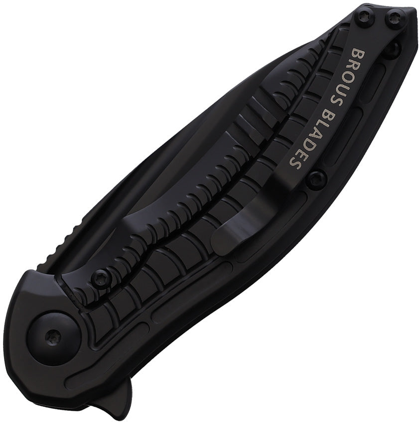 3.88" (9.86cm) closed. 3" (7.62cm) Blackout finish D2 tool steel blade. Blackout titanium handle. Extended tang. Pocket clip. Serialized. Hardside carrying case.