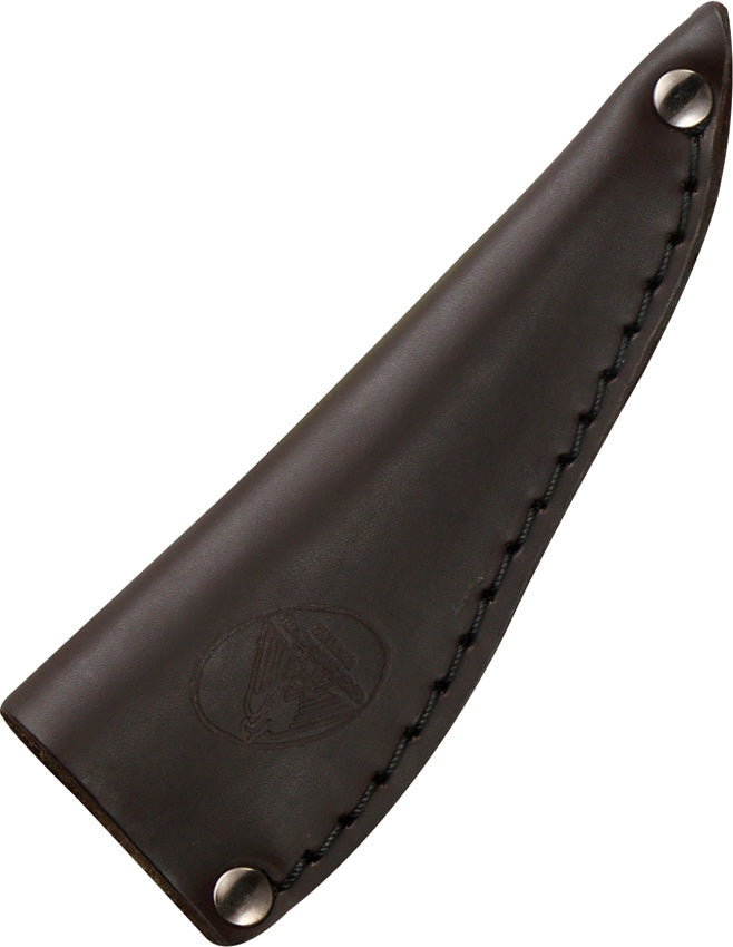 6 1/2" overall. 2 7/8" satin finish 1075 carbon steel blade. Full tang. Brown hardwood handles. Lanyard hole. Brown leather belt sheath.