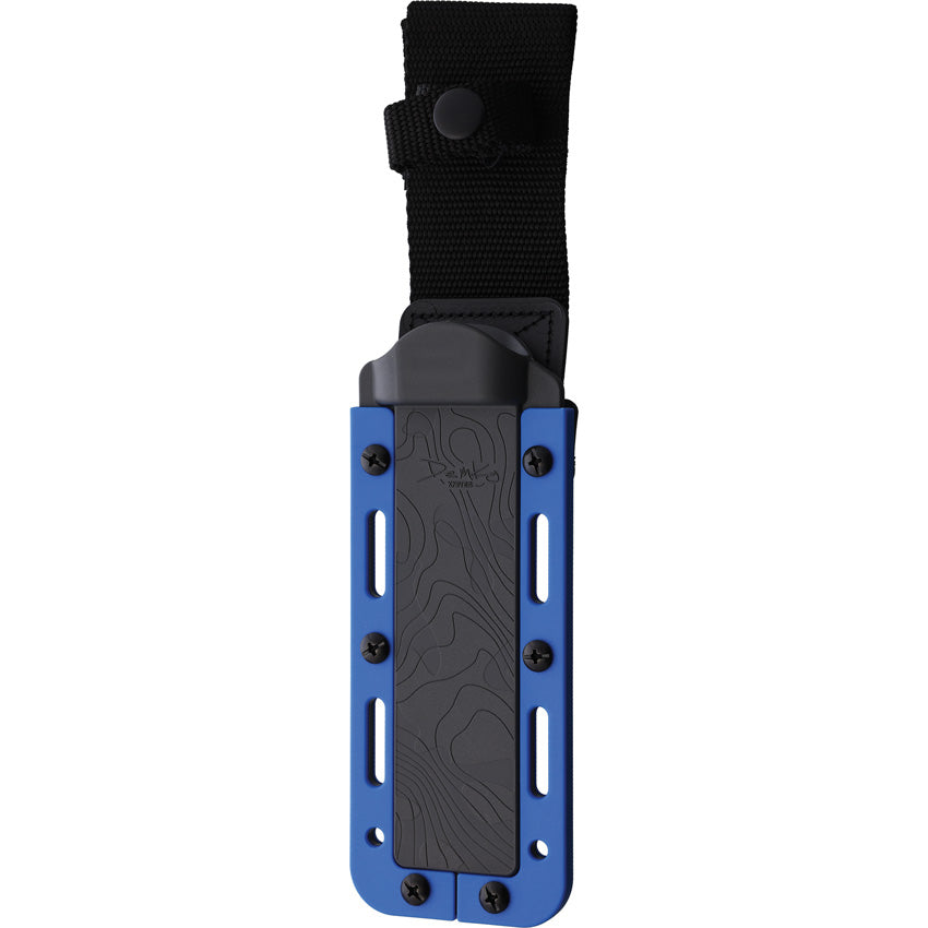 9.75" (24.77cm) overall. 5" (12.7cm) satin finish AUS-10A stainless drop point blade. Blue checkered rubber handle. Lanyard hole. Full tang. Gray and blue injection molded nylon belt sheath.