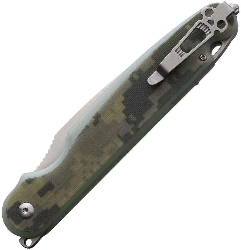 6" (15.24cm) closed. 4.75" (12.07cm) stonewash finish VG-10 stainless blade. Camo G10 handle. Extended tang. Glass breaker. Lanyard hole. Pocket clip. Boxed.