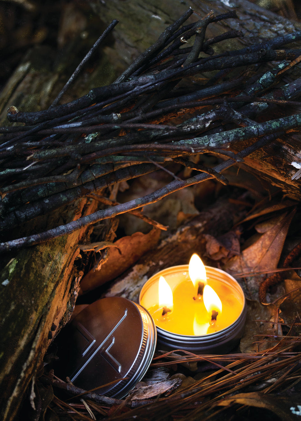 Heat Survival Candle. Hot burning version. Up to 6 hour burn time (approximately 2 hours per wick). Will boil 8 oz. of water in 18 minutes (requires all three wicks to burn at one time). Weighs approximately 1.8 oz. Tin plated steel construction. 100% beeswax with 3 wicks. Offers brighter light, burns cleaner and lasts longer than any other wax. Also use to light a shelter or heat an emergency blanket. Bulk packed with hanging tab.