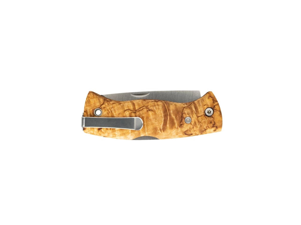 Nipa has expanded on the classic EDC folding knife, Kletten, introducing a slightly larger version with a hand-sanded curly birch wood handle. This durable knife is designed for practical use.