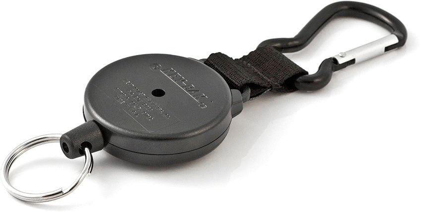 Other Info: Self-Retracting 48" Kevlar Cord. 2" diameter black polycarbonate case. Black nylon strap with black zinc alloy carabiner clip. 1.125" split ring. Holds up to 15 keys or 8-10 oz. Hang Packaged.