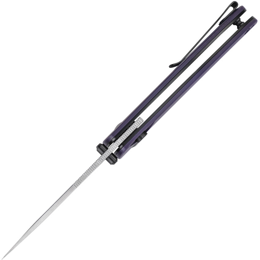 - The purple G10 handle adds a touch of elegance and uniqueness to your collection.