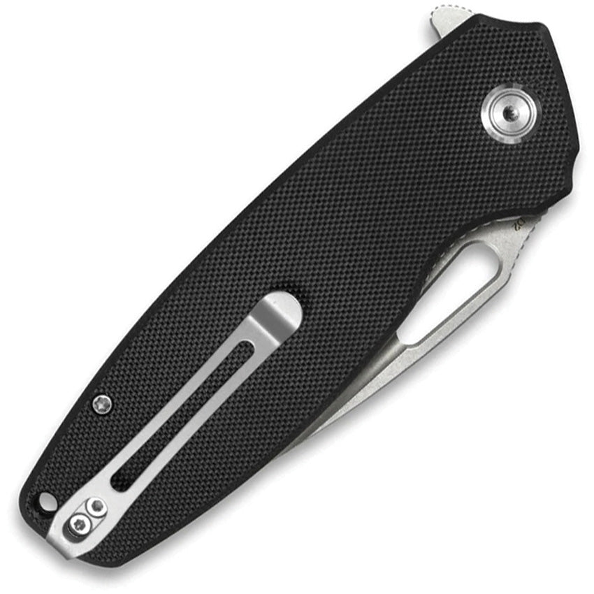 4.75" (12.07cm) closed. 3.38" (8.59cm) stonewash finish D2 tool steel blade. Black G10 handle. Extended tang. Lanyard hole. Thumb pull. Pocket clip. Boxed.