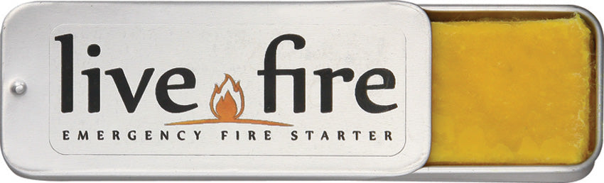 3 1/8" overall. The Original Emergency Fire Starter stores in metal tin that can serve as a signaling device. Lightweight, waterproof, extremely compact, burns extremely hot, burns for many hours, adjustable flame size and creates charred cloth. Pine scented. Weighs: 3 oz.