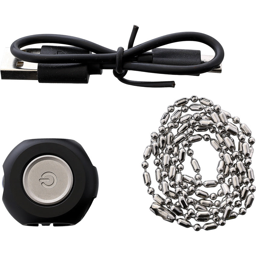 Dimensions: 1.26" x 1.06" x 0.47". Strobe. Water resistant. Impact resistant. Keychain. Rechargeable. CREE XP-G2 S4 LED. Modes: Turbo (300-55 lumens, 2+38m runtime); High (110-55 lumens, 2+45m runtime); Medium (16 lumens, 1.6h runtime); Low (4 lumens, 7.1h runtime). One hour charging time. USB Type-C. Beaded keychain. 31m beam distance. Requires (1) Lithium battery (included). Aluminum construction. Color: Black. Boxed.