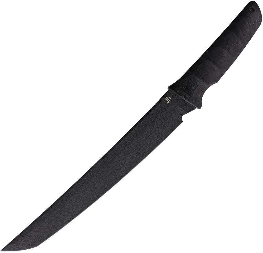14.5" (36.83cm) overall. 9.5" (24.13cm) black finish 01 tool steel tanto blade. Black synthetic handle. Black Kydex belt sheath. Zippered storage case.