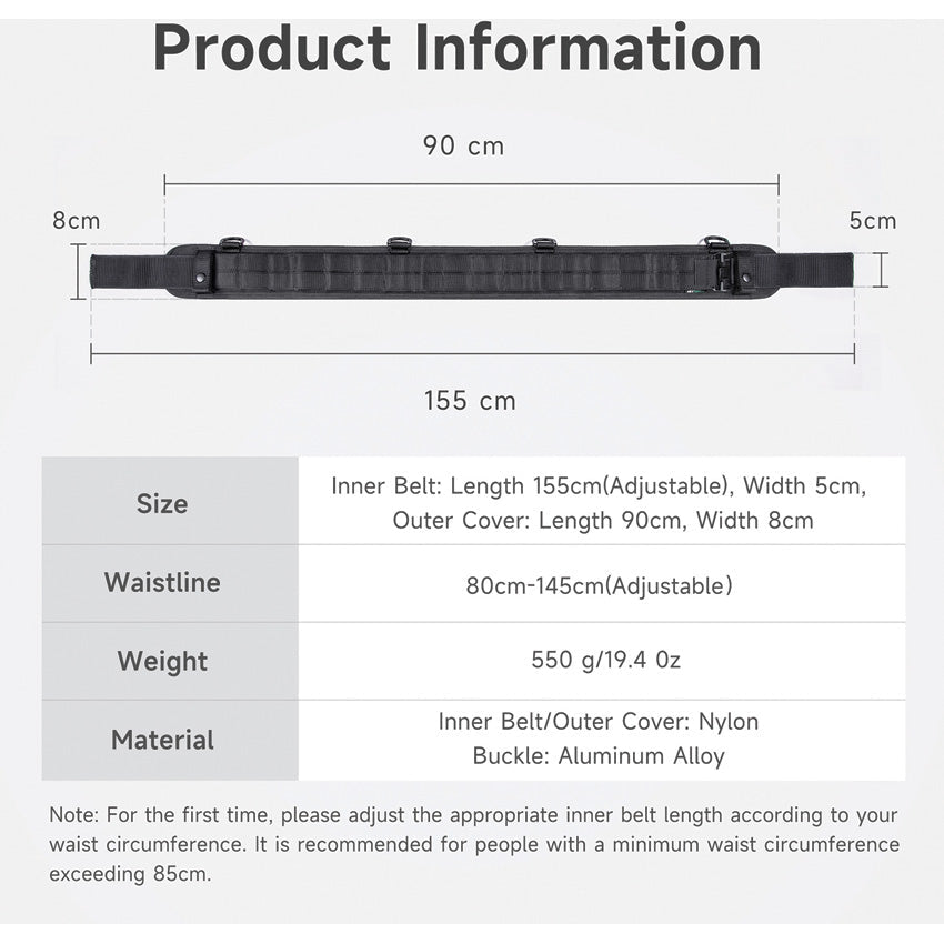 Quick-Draw modular system for holsters and pouches. One-handed quick attachment/removal. Double-layer MOLLE design for secure mounting. Aluminum buckle supports 200kg tensile strength. Suitable belt width: 38-50mm. Inner and outer belt combination for comfort and stability. Compatible with multiple holsters and pouches (sold separately). Boxed.