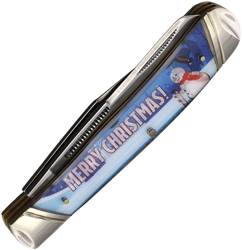 4.13" (10.49cm) closed. Mirror finish stainless clip and spey blades. Nickel silver bolster(s). Lenticular handles with Christmas scenes on both sides. Boxed.