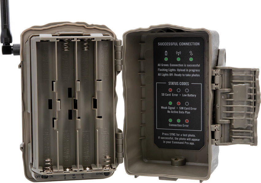 Pack of two. 36MP photo (4MP/8MP/16MP/36MP). 720P video. Hi-resolution power LEDs. Quick scan QR code set-up. No glare matte PIR and IR array. Burst mode 1-6 images per triggering. Time/Date/Moon phase/Camera name image stamps. 2-59 sec/1-59min recovery time out delay. Integrated multi-position mount. Matrix advanced blur reduction. Retina low light sensitivity. 0.25" 2- threaded insert. 120V DC auxiliary jack for use with external power packs. Powered by 16 AA batteries (not included). Boxed with hanging tab.