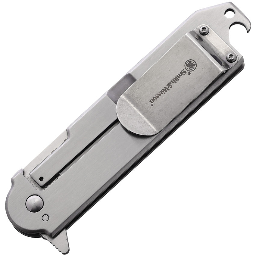 The Smith & Wesson Big Benji takes everyday carry to the next level by combining a large tanto blade with a multi-functional build. Featuring a 9 cm (3.54 in) 8Cr13MoV stainless steel blade and Ultra Glide® bearing technology, it opens smoothly via a flipper. The G10 handle offers a secure grip, while the integrated frame lock ensures safety in use. Built-in extras like a bottle opener and money clip-style pocket clip make the Big Benji a practical and compact tool for daily life.